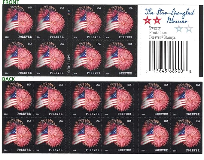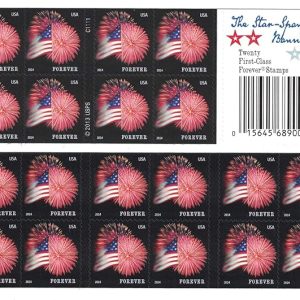 This stamp commemorates 200th anniversary of Star-Spangled Banner. The stamp’s image is from a photo of a flag that flies over Fort McHenry National Monument and Historic Shrine. It was taken during fireworks display at annual Defenders’ Day celebration.